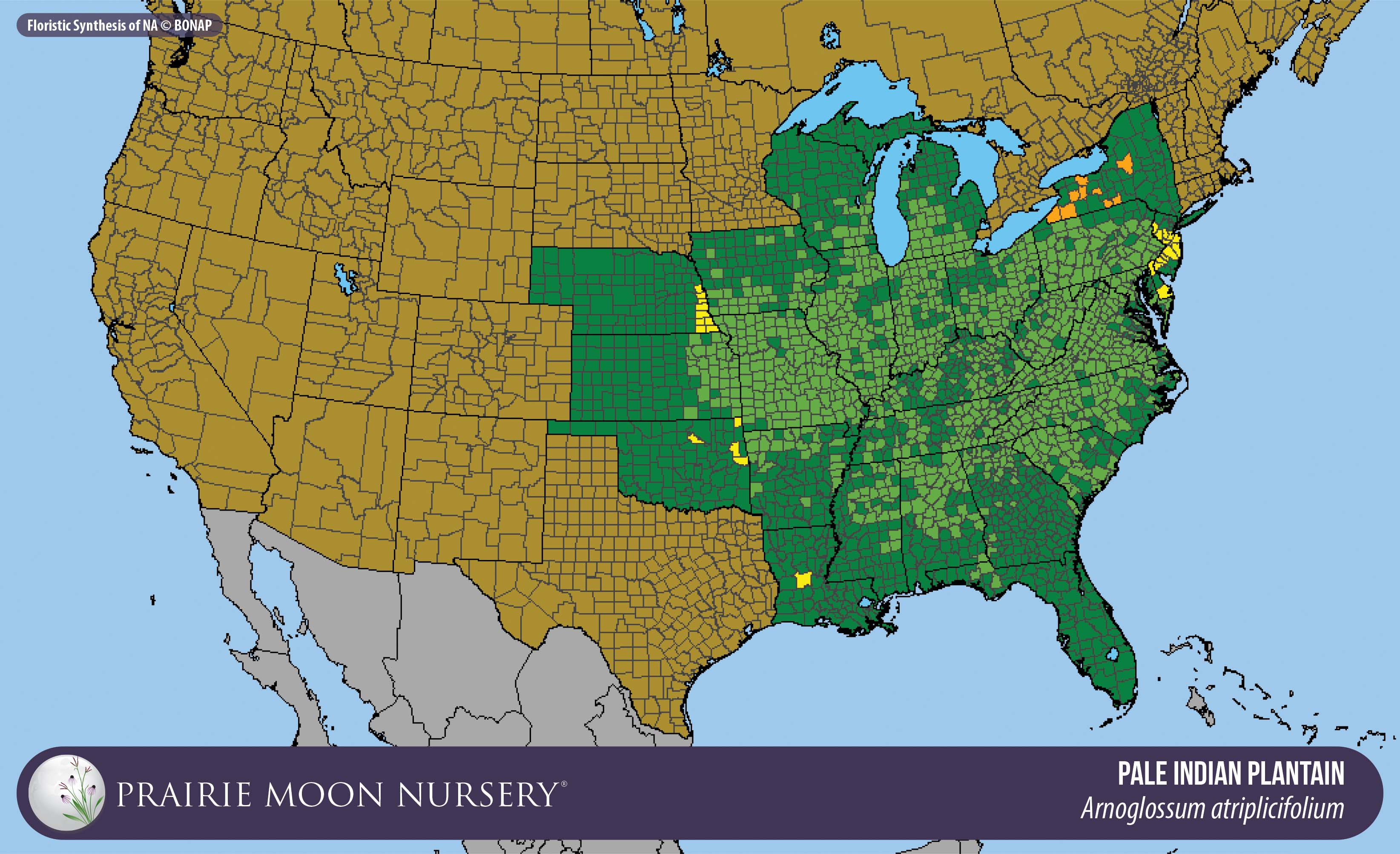 This map shows the native and introduced (adventive) range of this species. Given appropriate habitat and climate, native plants can be grown outside their range.