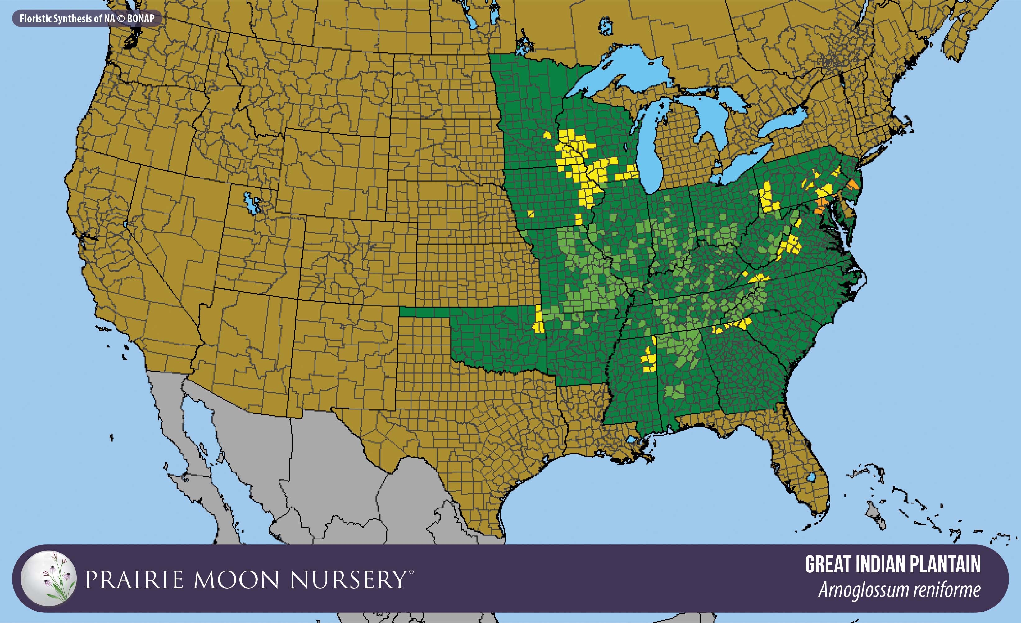 This map shows the native and introduced (adventive) range of this species. Given appropriate habitat and climate, native plants can be grown outside their range.
