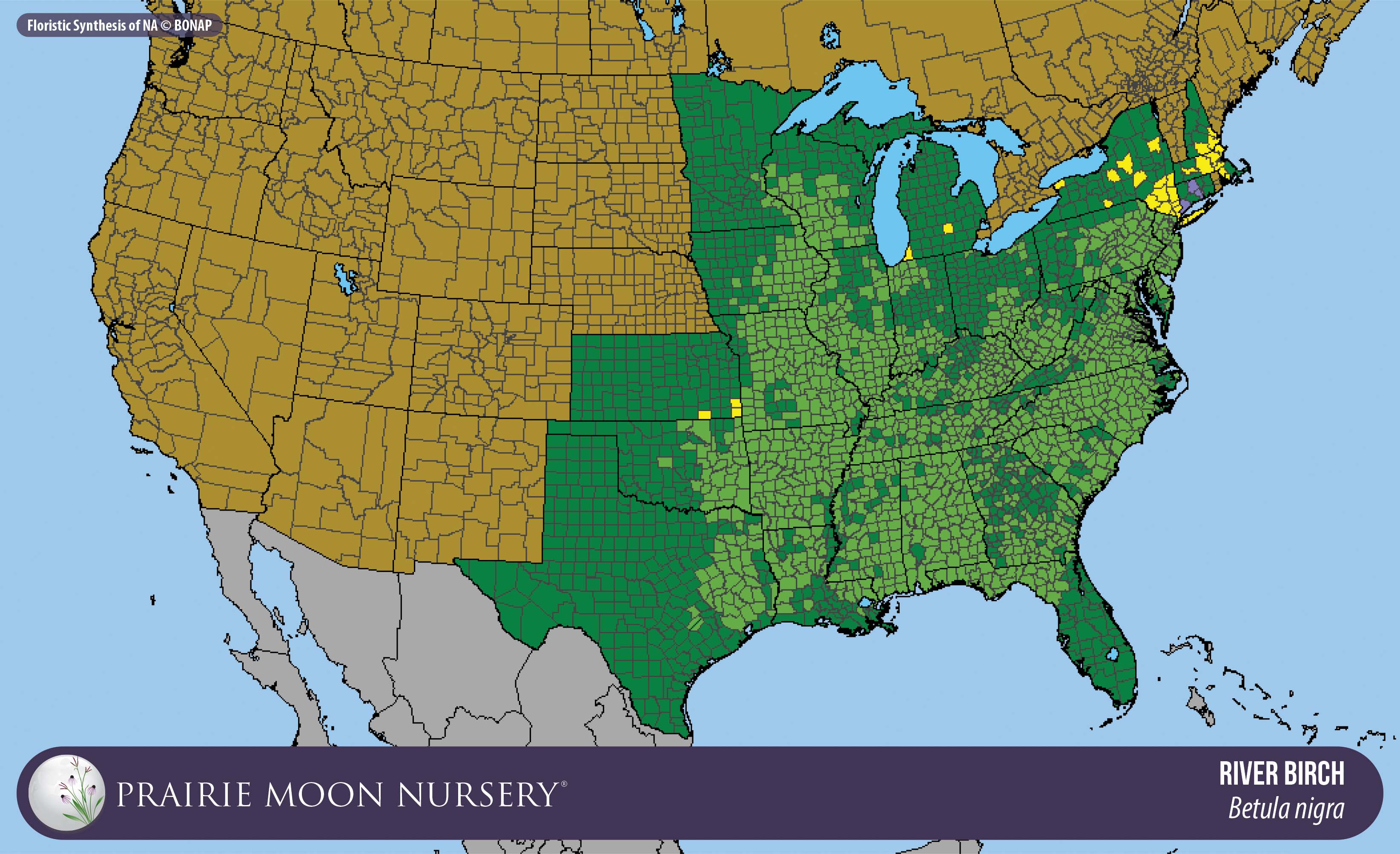 This map shows the native and introduced (adventive) range of this species. Given appropriate habitat and climate, native plants can be grown outside their range.