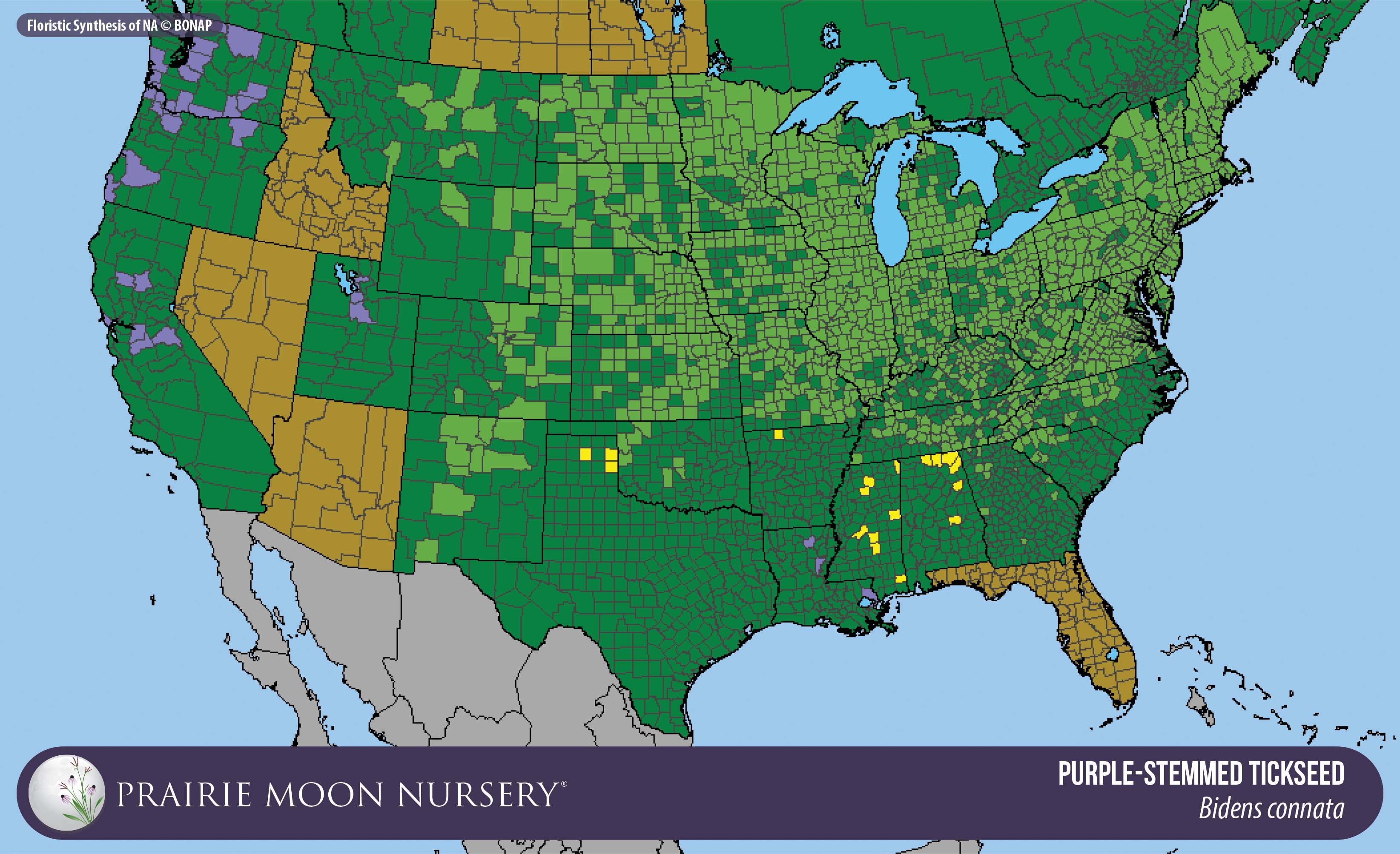 This map shows the native and introduced (adventive) range of this species. Given appropriate habitat and climate, native plants can be grown outside their range.