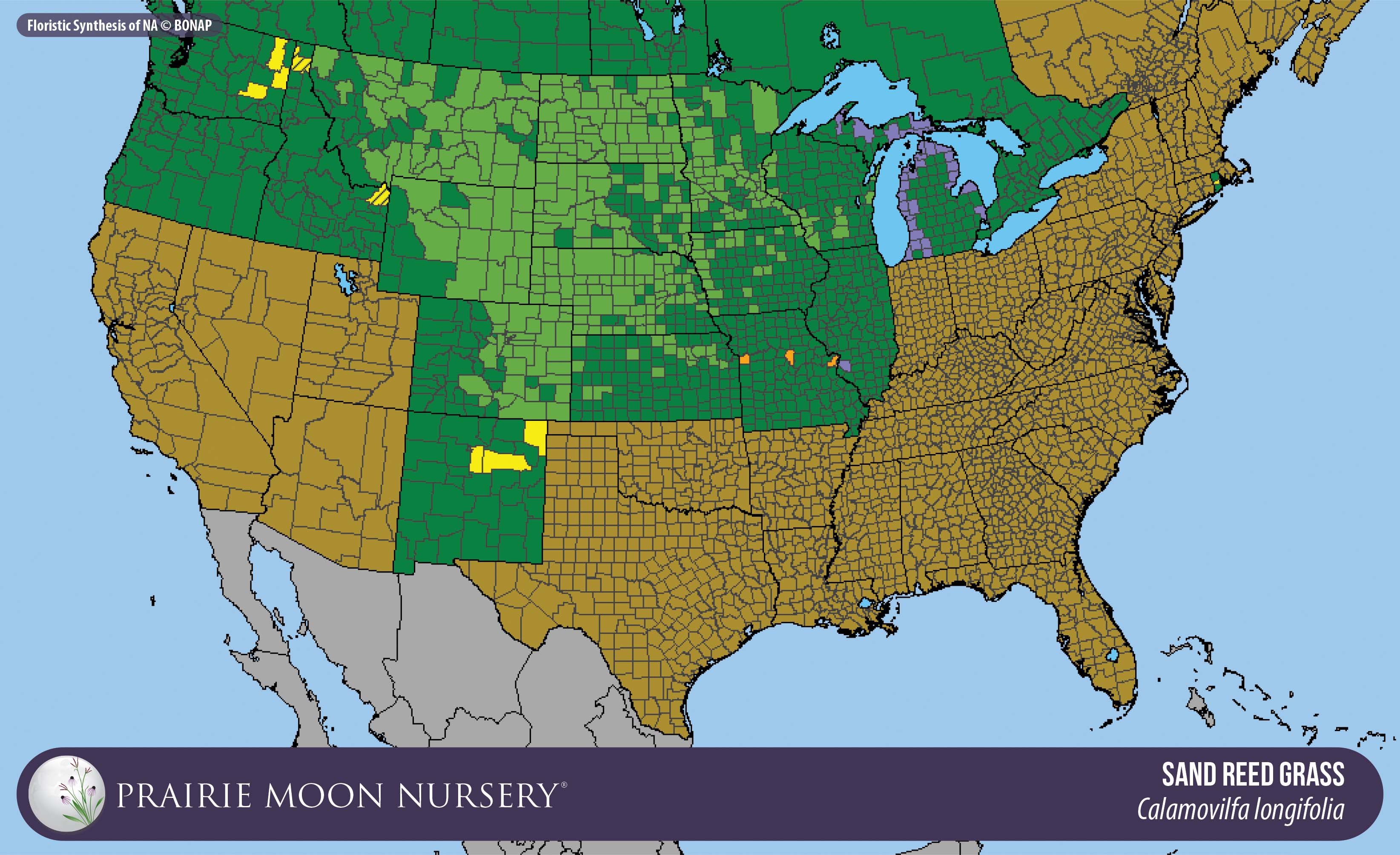 This map shows the native and introduced (adventive) range of this species. Given appropriate habitat and climate, native plants can be grown outside their range.