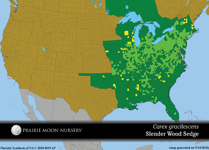 This map shows the native and introduced (adventive) range of this species. Given appropriate habitat and climate, native plants can be grown outside their range.