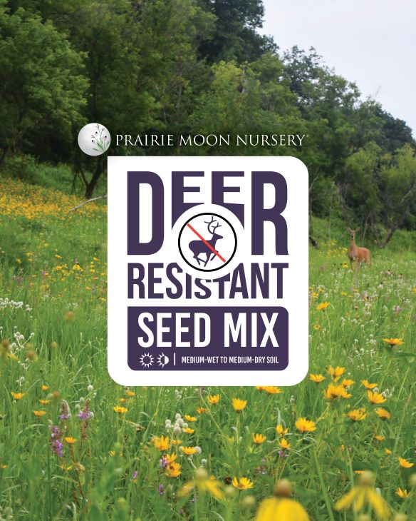 Like all indigenous animals in North America, deer co-evolved with native plants, making them their preferred food source. The dwindling stands of native plants in nature are imperiled by swelling deer populations.  Deer may browse on any plant if food is scarce, but there are many plants that they don't find palatable. This seed mix is made up of native species they tend to shy away from; plants with rough texture (i.e Silphium species), milky sap (Milkweeds), or minty, citrus, or onion aroma (Hyssop, Mountain Mint, Bee Balm and Allium species) are all included in this native seed mix.