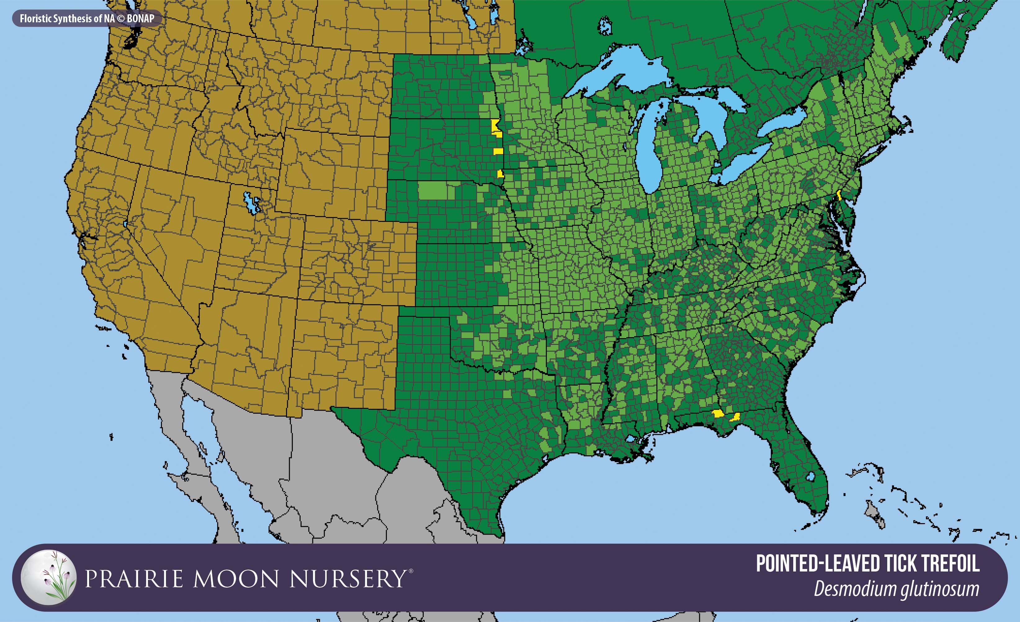 This map shows the native and introduced (adventive) range of this species. Given appropriate habitat and climate, native plants can be grown outside their range.