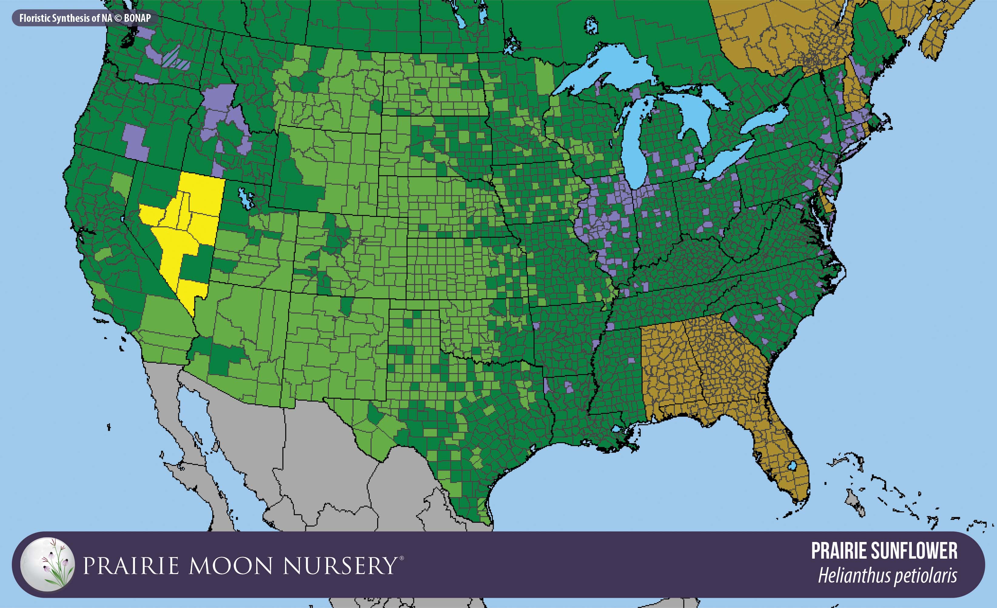 This map shows the native and introduced (adventive) range of this species. Given appropriate habitat and climate, native plants can be grown outside their range.