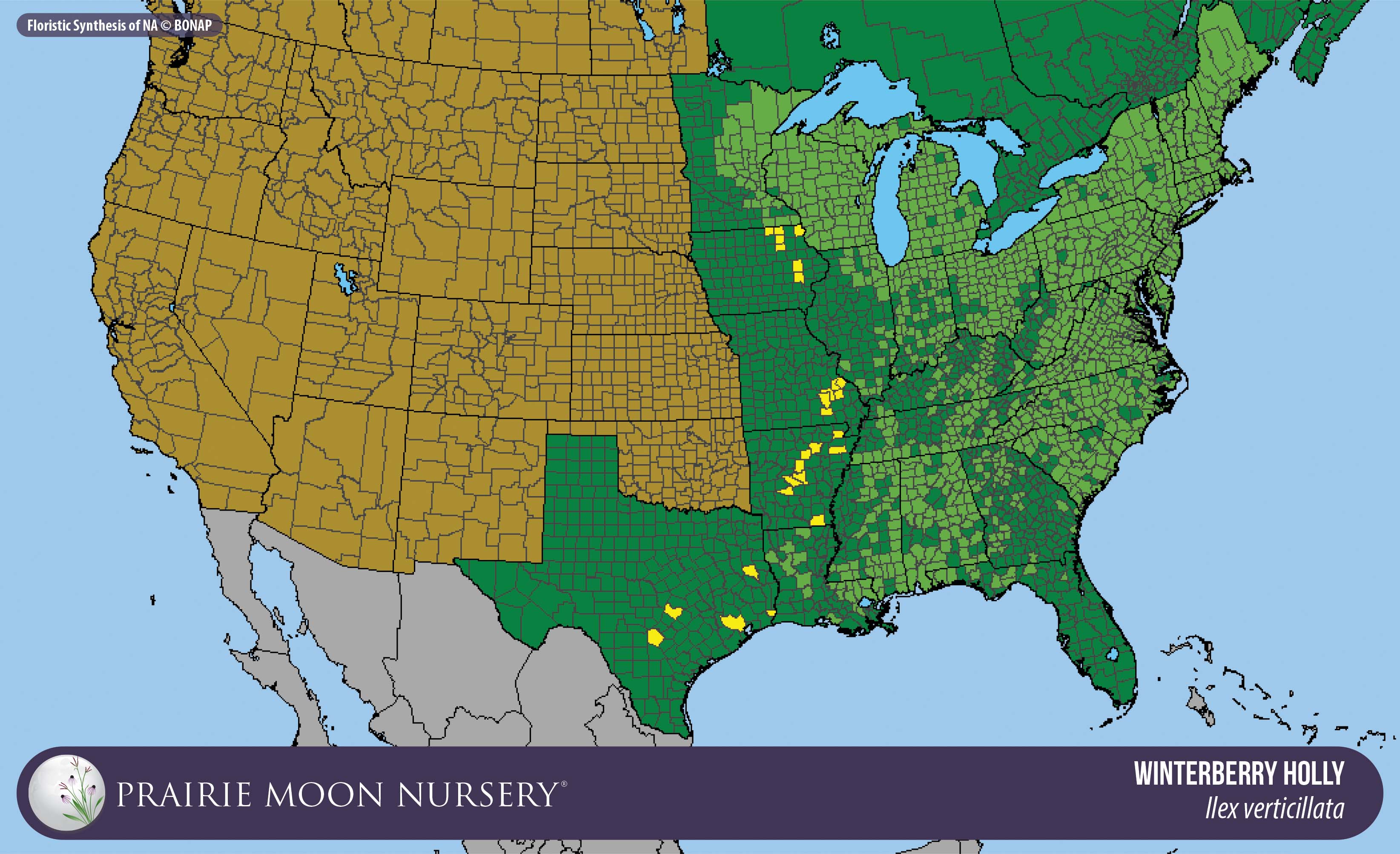 Winterberry Holly prefers full sun to part shade and mesic to wet soils. It is a great plant for lake, pond or marsh edges. It also grows in swamps and at the edges of upland forests where the water table approaches the surface. In the home landscape it can be maintained in mesic, loamy soils as well as wet sites.