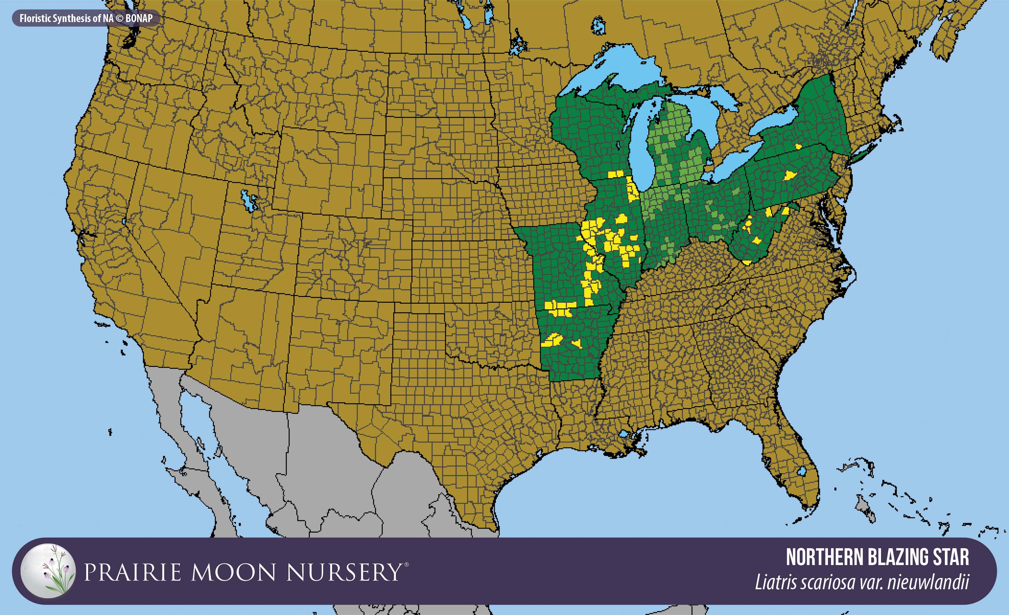 This map shows the native and introduced (adventive) range of this species. Given appropriate habitat and climate, native plants can be grown outside their range.