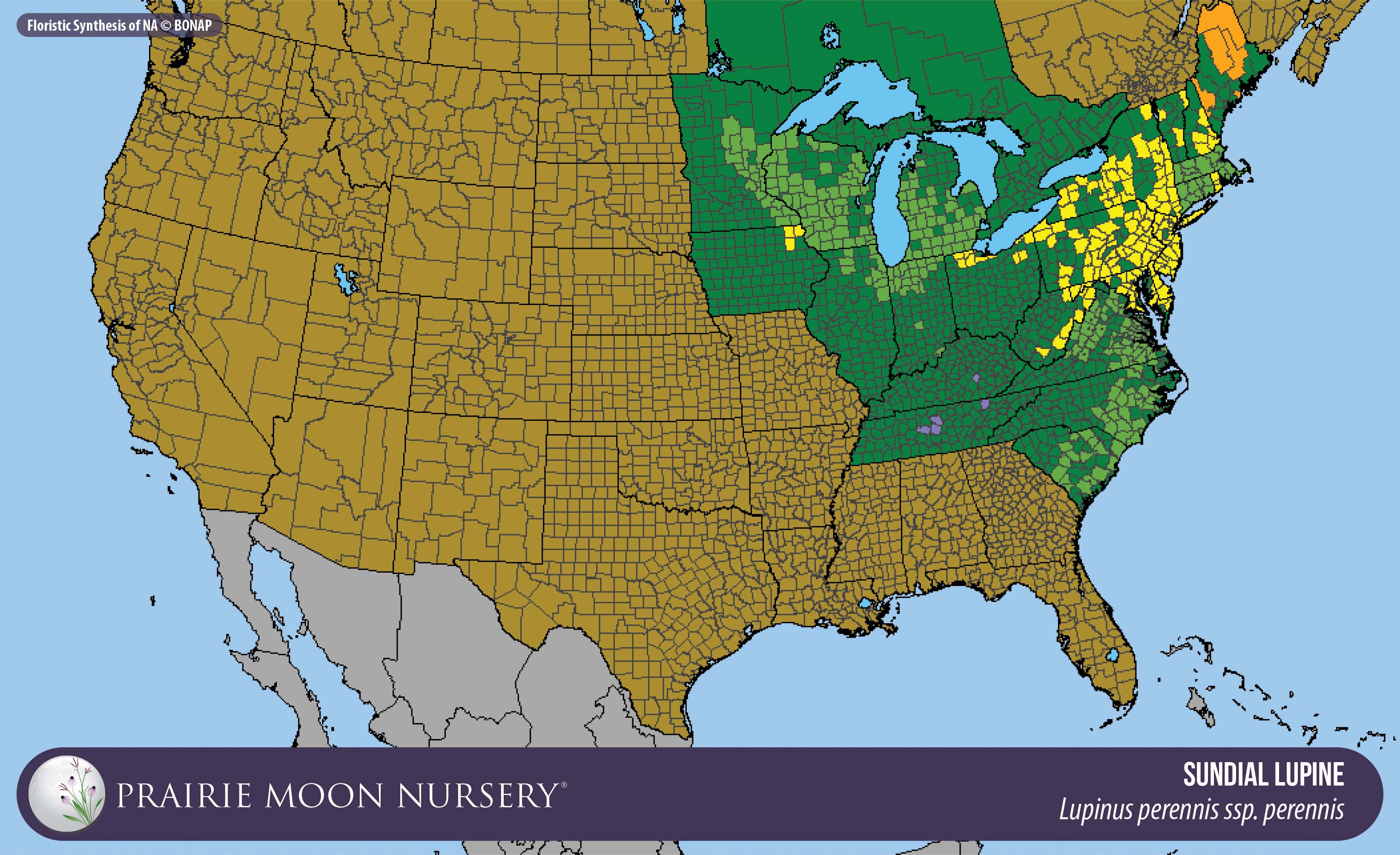 *We recently changed the name "Wild Lupine" to "Sundial Lupine - Lupinus perennis subsp. perennis" to differentiate it from Lupinus polyphyllus - Western Lupine, also commonly called Wild Lupine. Western Lupine is NOT a larval host plant for the endangered Karner Blue, but unfortunately it has been labeled as such and has infiltrated the native seed market, behaving aggressively in Midwest and Northeast climates and hybridizing with L.perennis. L. polyphyllus has 11–17 leaflets and may reach up to 5" long whereas L. perennis leaves are smaller and have less leaflets: 7-11 leaflets that reach about 2" in length.