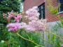 Queen of the Prairie heralds fragile sprays of tiny pink buds in early summer.  These pearlescent clusters burgeon out and burst open from bottom to top in an abundance of little flowers attended by a fanfare of filaments.  Floating above the surrounding plants, the cotton candy-colored plumes look exactly like the favorite carnival food.  Color saturation often increases as the flowers mature, ranging from the faintest of pinks to rich, regal magentas.  These blooms ascend from lovely, deeply lobed foliage that provide an attractive backdrop after the showstopping flowers are spent.  Deadheading does not signal for more flower production, so enjoy them while they last!  The stems can sometimes be a ruddy red.