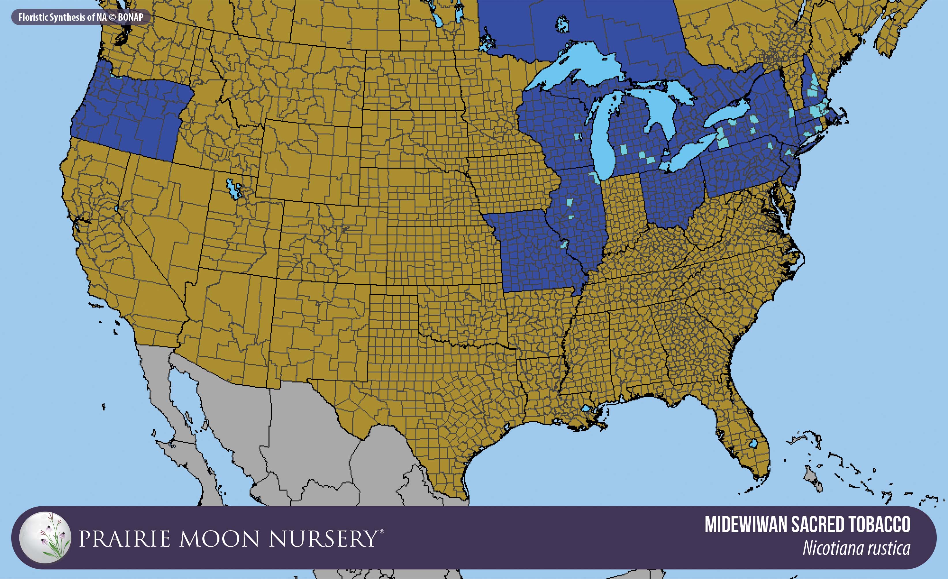This map shows the native and introduced (adventive) range of this species. Given appropriate habitat and climate, native plants can be grown outside their range.
