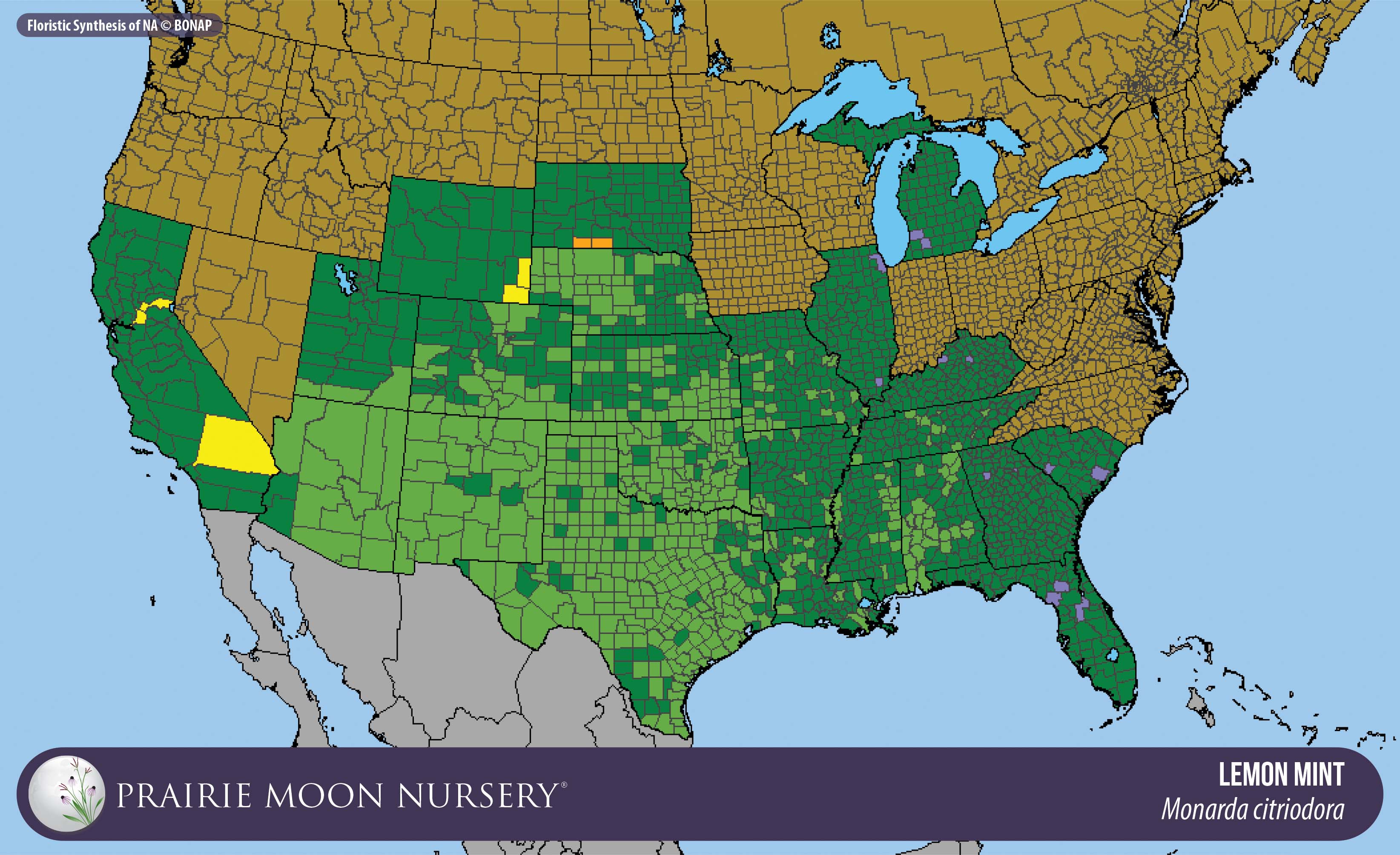 This map shows the native and introduced (adventive) range of this species. Given appropriate habitat and climate, native plants can be grown outside their range.
