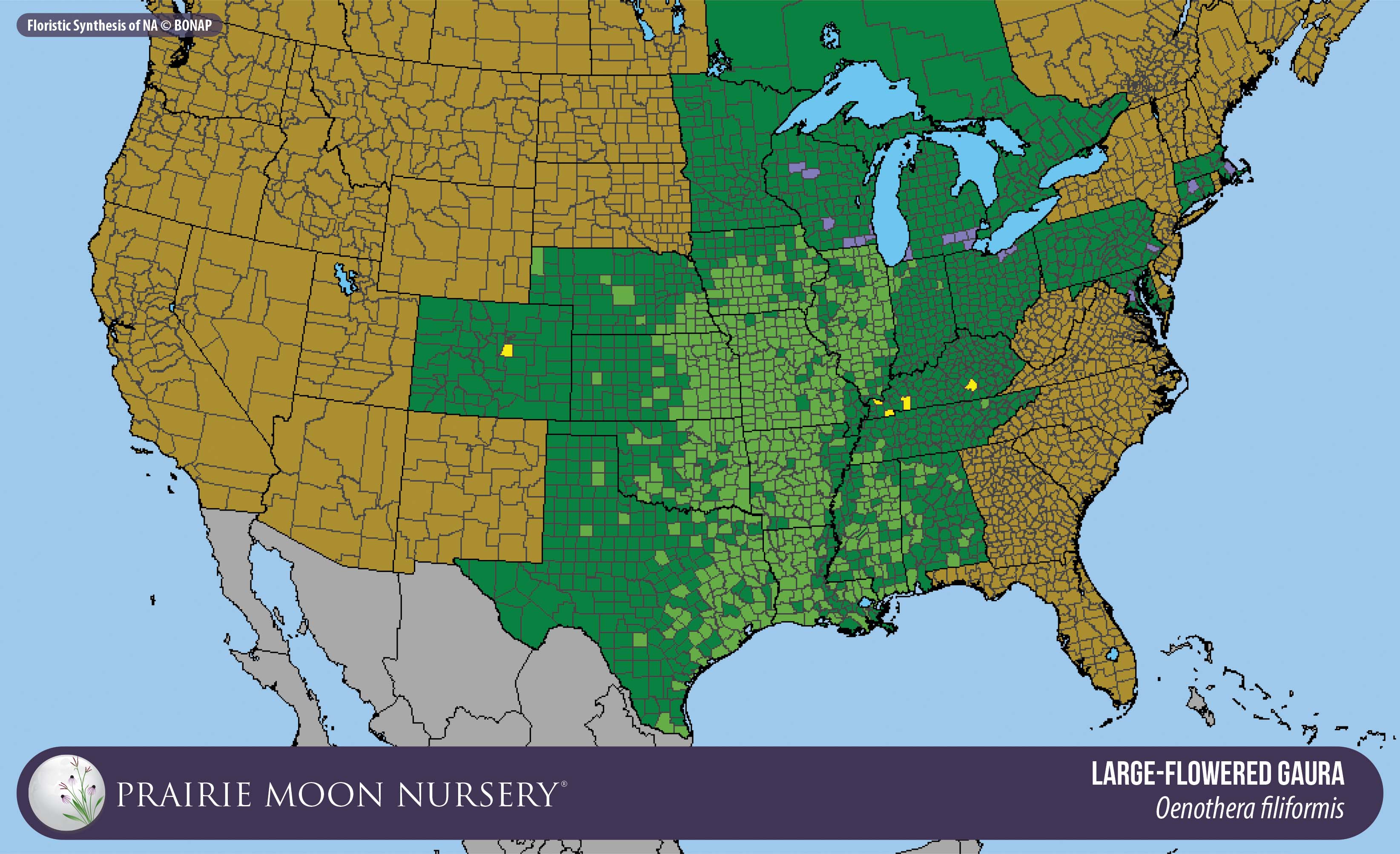 focused largely in the South and Great Plains, but you can find Large-flowered