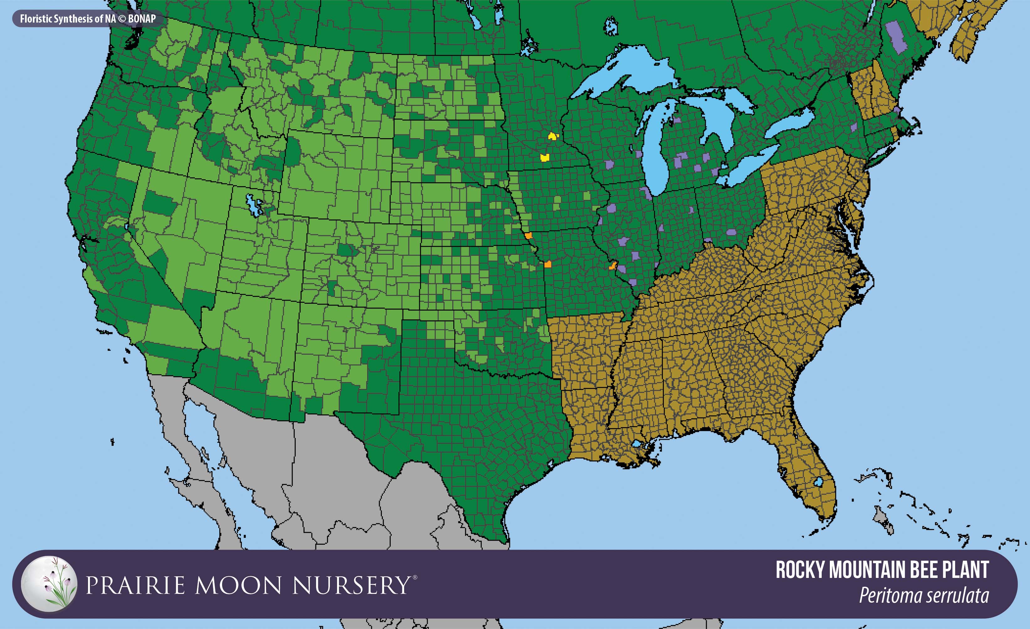 This map shows the native and introduced (adventive) range of this species. Given appropriate habitat and climate, native plants can be grown outside their range.