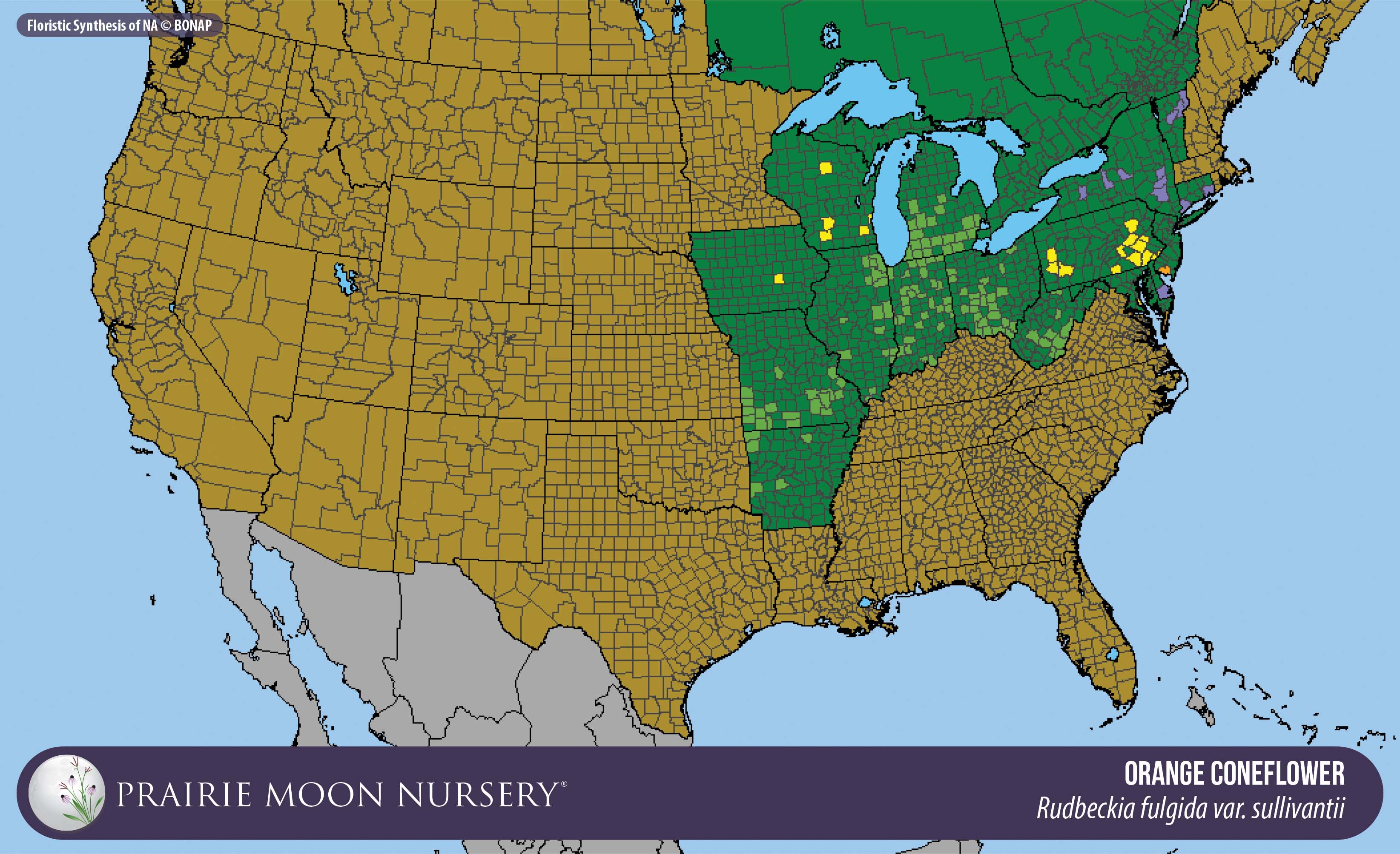 This map shows the native and introduced (adventive) range of this species. Given appropriate habitat and climate, native plants can be grown outside their range.