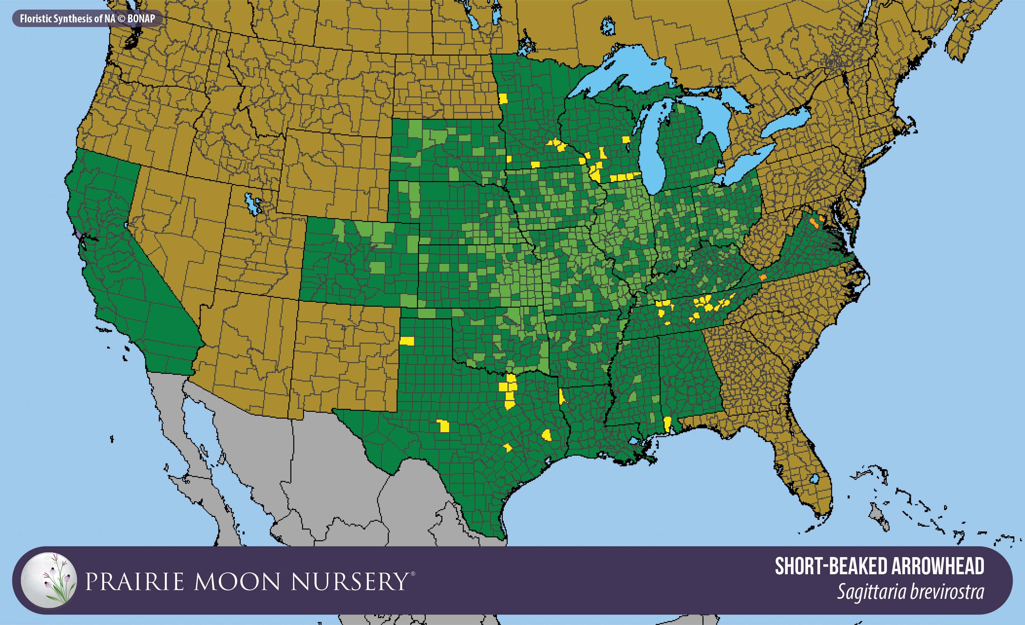 This map shows the native and introduced (adventive) range of this species. Given appropriate habitat and climate, native plants can be grown outside their range.