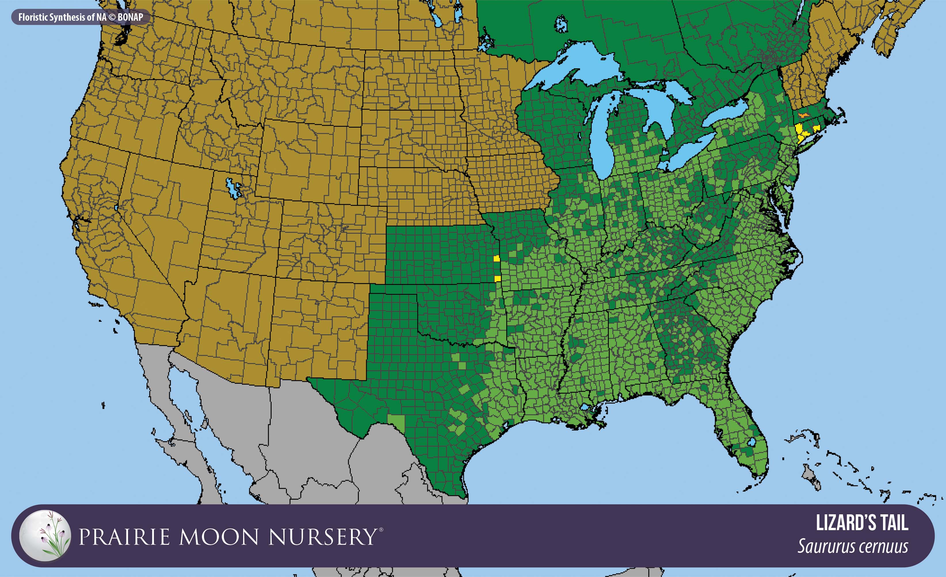 This map shows the native and introduced (adventive) range of this species. Given appropriate habitat and climate, native plants can be grown outside their range.