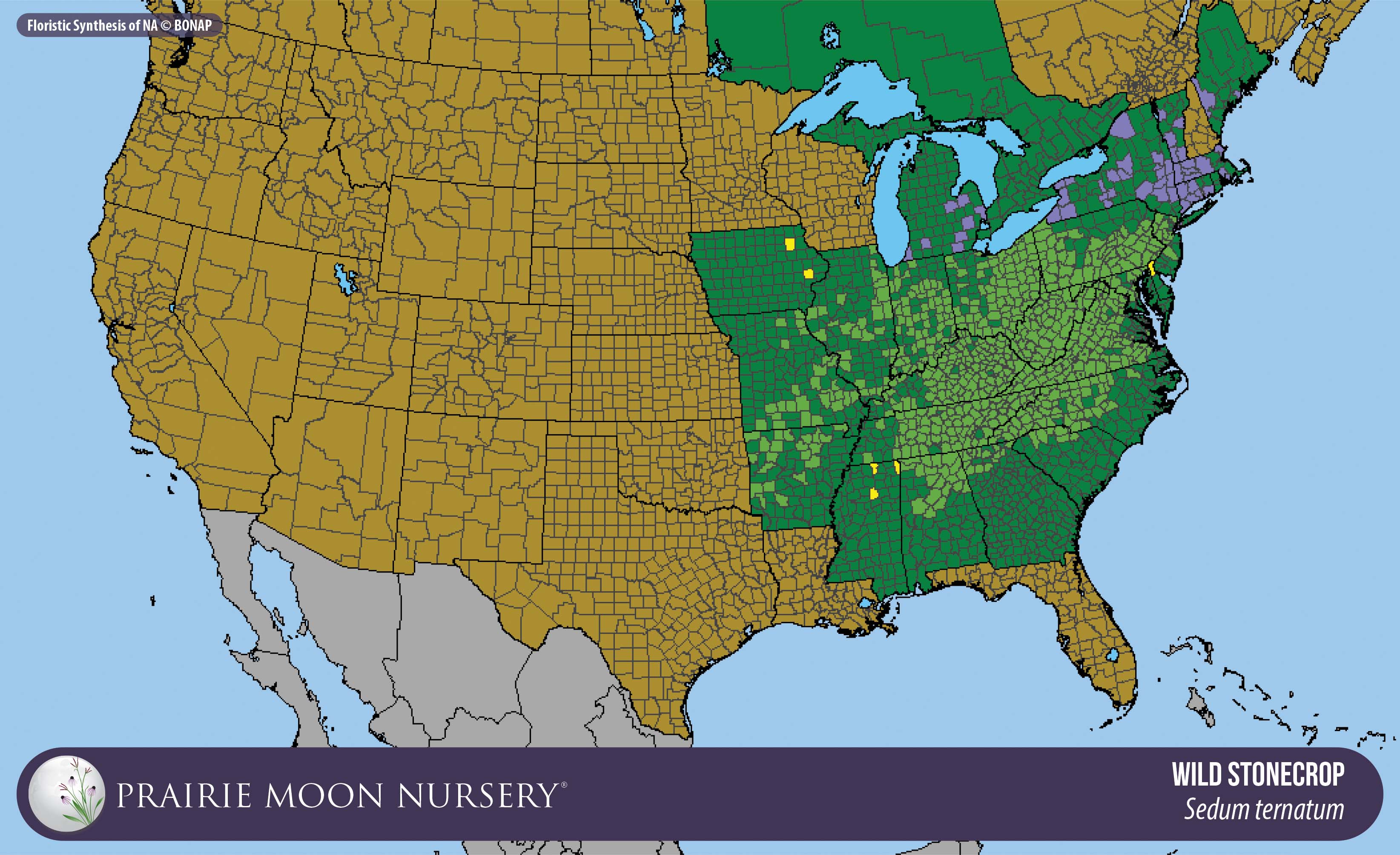 This map shows the native and introduced (adventive) range of this species. Given appropriate habitat and climate, native plants can be grown outside their range.