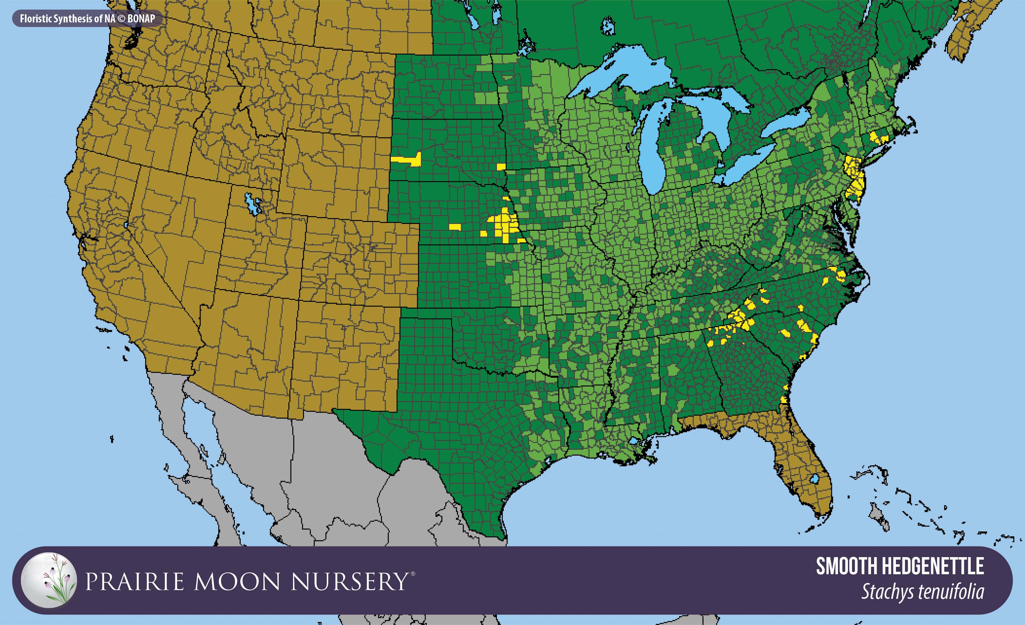This map shows the native and introduced (adventive) range of this species. Given appropriate habitat and climate, native plants can be grown outside their range.