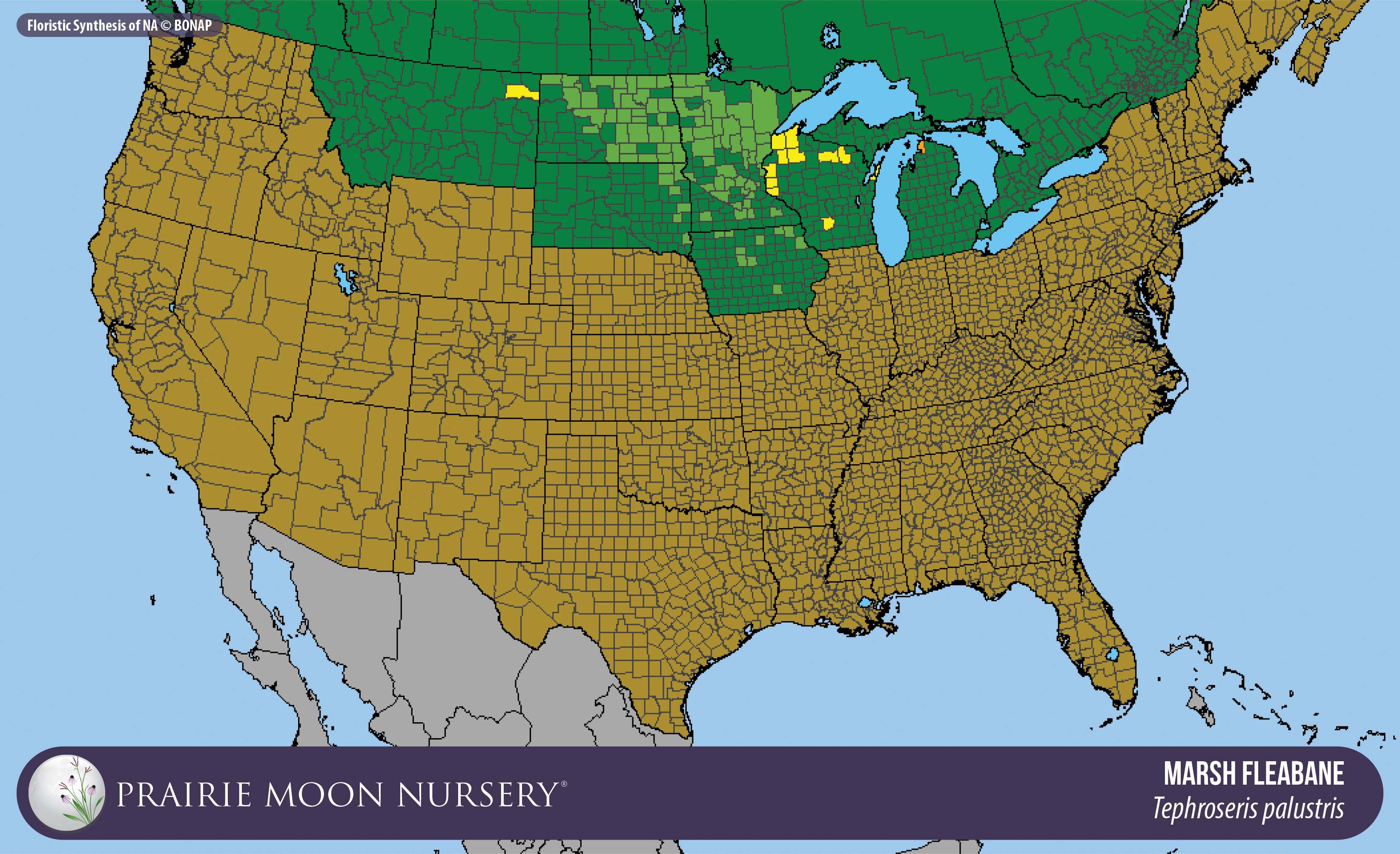 This map shows the native and introduced (adventive) range of this species. Given appropriate habitat and climate, native plants can be grown outside their range.