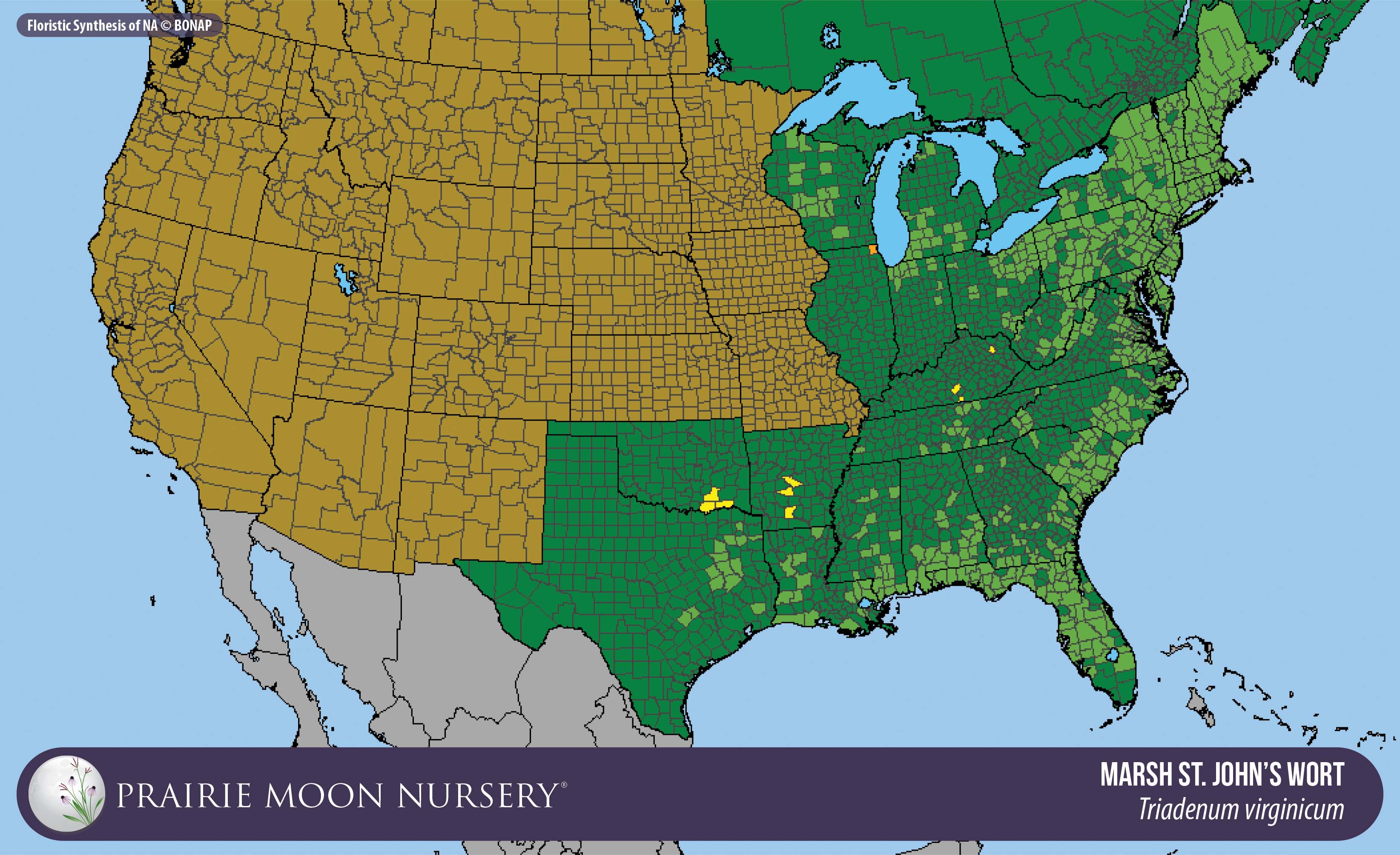 This map shows the native and introduced (adventive) range of this species. Given appropriate habitat and climate, native plants can be grown outside their range.
