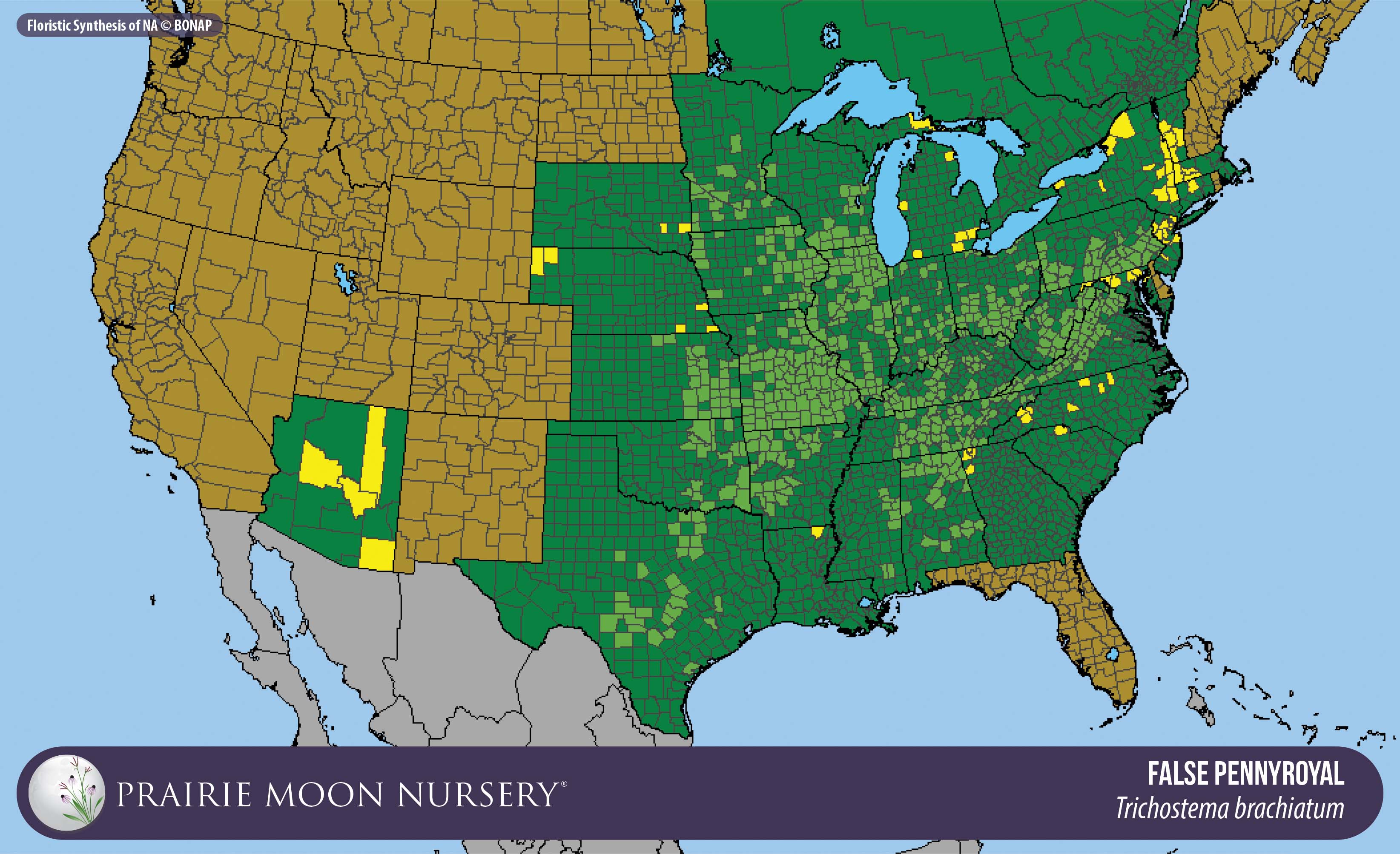 This map shows the native and introduced (adventive) range of this species. Given appropriate habitat and climate, native plants can be grown outside their range.