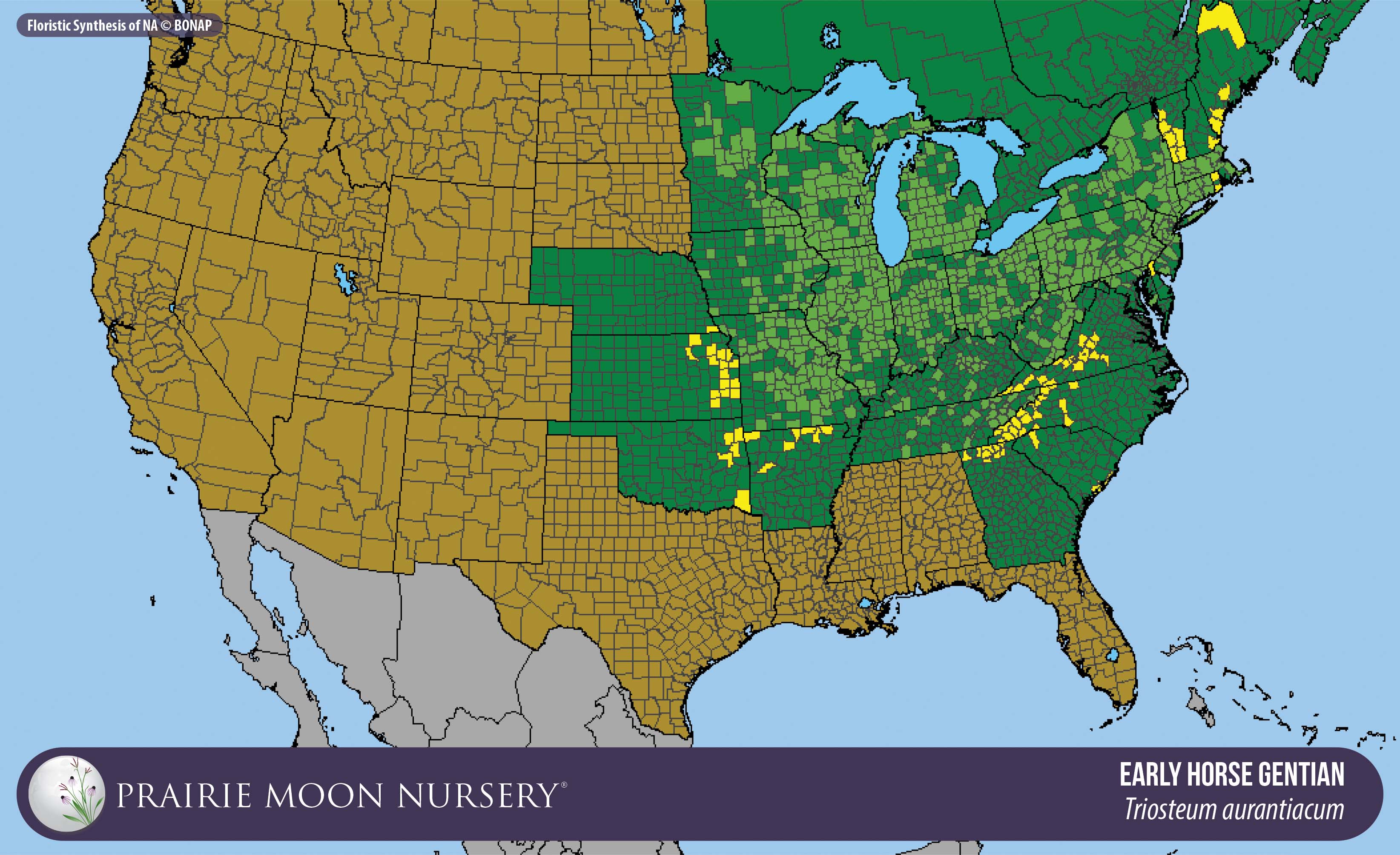 This map shows the native and introduced (adventive) range of this species. Given appropriate habitat and climate, native plants can be grown outside their range.